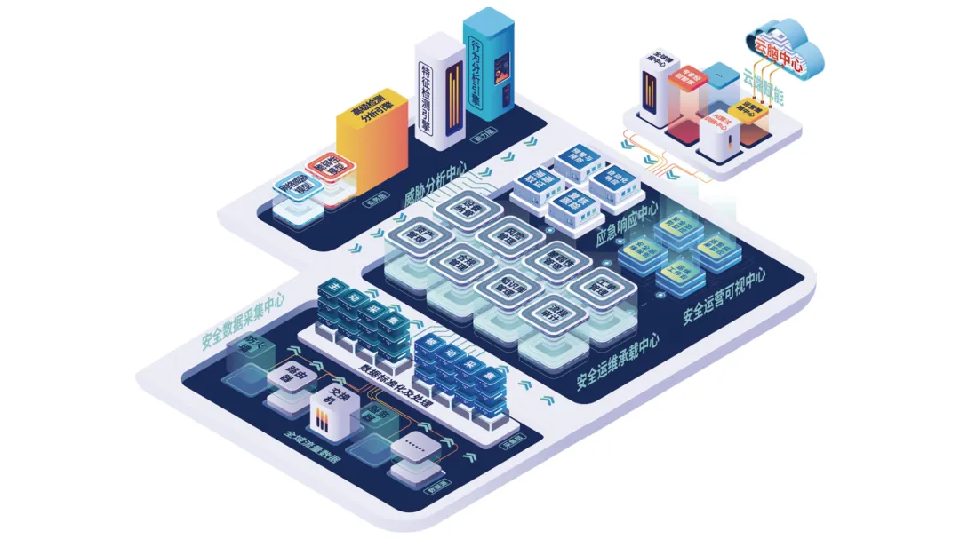 聚铭下一代智慧安全运营中心(AISOC)面向企事业单位提供一站式安全运营管理解决方案,集成数据采集中心、安全分析中心、应急响应中心、运维承载中心与安全运营可视中心五大模块。平台以大数据、AI、智能编排等技术为基础,结合威胁情报、ATT&CK、攻击链、流量取证等研判技术,协助用户开展网络安全常态化运维工作,并加强日志收集、流量分析、基线合规、等保合规的管理工作,实现安全风险的集中收集及监控、威胁的集中分析及处置、应急响应集中指挥、常态运营的持续支撑、效能的统一展示。