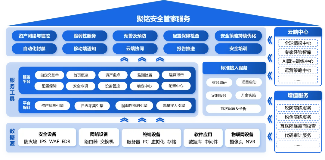 依托安全运营平台,配套提供涵盖资产梳理、策略优化、漏洞扫描、渗透测试、应急响应等模块的全方位安全运营服务。通过每周现场巡检、每月漏洞扫描、重要时期重保值守等标准化交付,将日常安全工作从“被动响应”提升为“主动运营”。