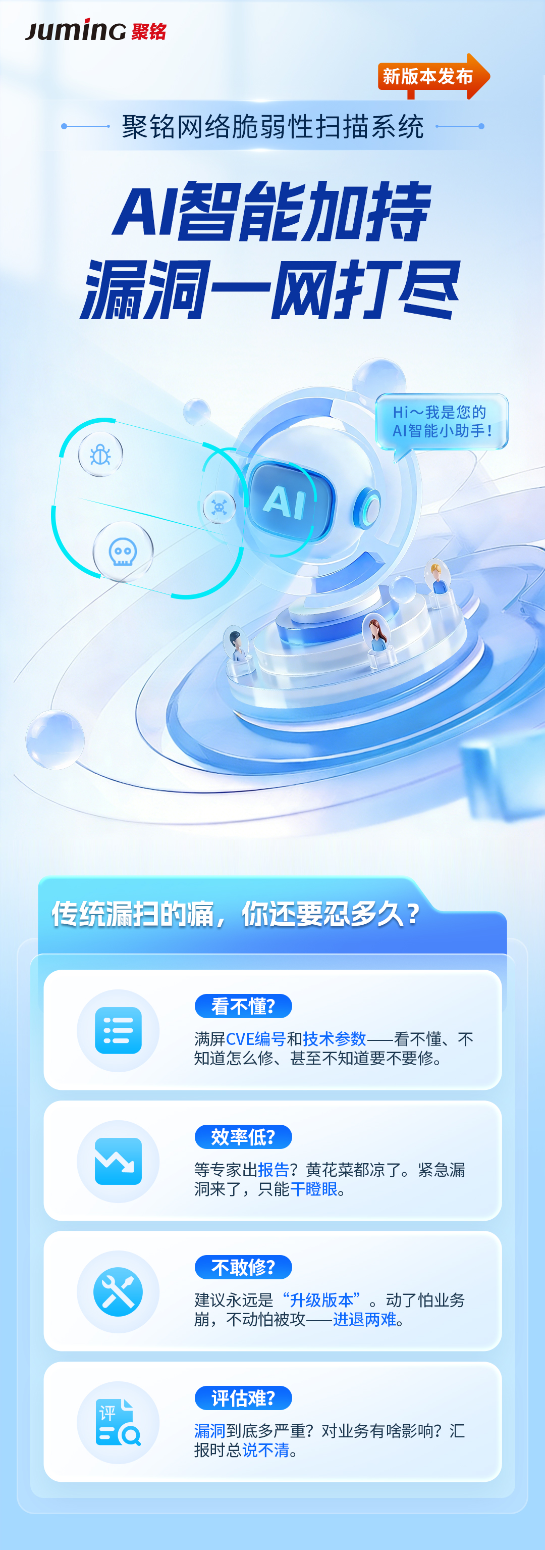 AI智能加持,漏洞一网打尽!聚铭网络脆弱性扫描系统新版本正式上线