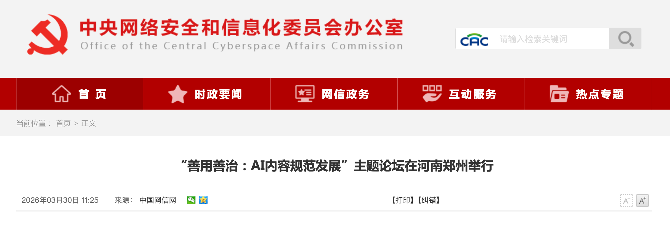 信息来源:中央网络安全和信息化委员办公室 https://www.cac.gov.cn/2026-03/30/c_1776530774554878.htm