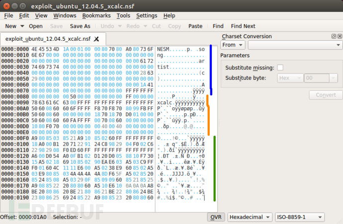 如果你对NSF文件感兴趣,可以点击这里下载cv2.nsf(这是游戏《恶魔城:暗影之王》的BGM)。这类文件都很小,要包含样本其实也有难度,但如果要搞点小动作还是可以的。有兴趣的同学可以点击这里下载漏洞利用文件,如上图所示。
